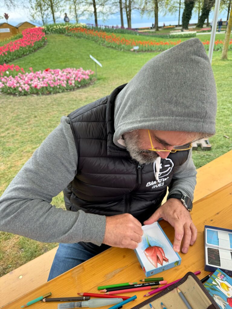 The timing couldn’t have been better. Just days after its release, Tulip—the latest creation from Les Tontons Joueurs—made a vibrant appearance at the Fête de la Tulipe in Morges, Switzerland, on April 12–13. Invited by the local game store Ludivander, the team spent the weekend introducing curious festival-goers to their floral-themed board game.