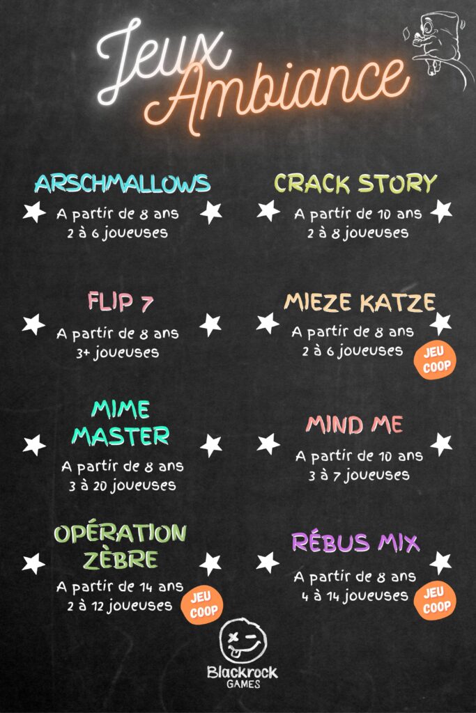Jeux de société : 1 jeu à gagner par jour entre le 1er et le 24 décembre. Le jeu à gagner est mentionné dans la story quotidienne. (Liste exhaustive : Smile Life – Présages – Punto – Skyjo Voyage – Crack List La Récré – Flip 7 – Symbiose – Tag Team – Opération Zèbre – Moustache – Gatsby – P’tit Pois – Danger – Avant Après – Mieze Katze – Color Words – Lacuna – Arschmallows – Back stories les noces d’émeraude – Cachamot – Escargots Prêts Partez – Hantise)
