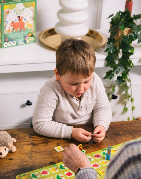 Forest First c’est le premier né d’une large gamme de jeux pour enfants qui a vu le jour début d’année 2025. Inspirés par leur expérience respective dans l’industrie du jeu, Nathalie et David, deux amis ont décidé en 2024 de monter leur maison d’édition et de s’adresser à un public bien précis : les 3-6 ans. Un choix motivé par la facilité pourriez-vous dire… pas de mécaniques de draft, d’enchères ou de placement d’ouvriers. Et bien détrompez-vous. « À cet âge-là, ils sont aussi drôles qu’exigeants », sourit David. Nathalie confirme : « J’ai jamais fait de jeux pour une tranche d’âge plus avancée mais là effectivement il faut réussir à donner envie à l’enfant de jouer, que ce soit simple et facile et cela tout en gardant l’intérêt des parents ». Un combo difficile à trouver, mais heureusement, pour y parvenir ils sont accompagnés d’auteurs de talents, d’illustrateurs investis, mais aussi de testeurs en herbe, imperturbables, les élèves de l’école Saint-Exupéry de Bois-Colombes dans les Hautes-Seines.