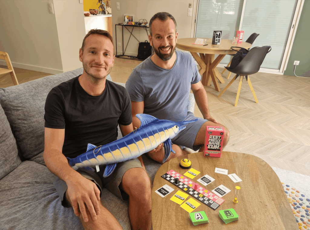Le jeu d’ambiance une finalité en soi où de nouvelles perspectives pourraient-elles s’ouvrir aux deux amis ? “La question pourra se reposer dans un an ou deux, tempère Rémy. La porte n’est pas totalement fermée. Mais là, aujourd’hui, nous aimerions devenir une référence du party-game. Nous n’avons pas le profil de vrais joueurs, du coup on préfère dans un premier temps rester dans notre zone de confort et proposer des choses de qualité. Des jeux à 20 € avec lesquels on s’amuse en famille ou entre amis, ça ça nous parle !”