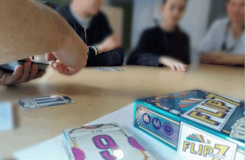 Avec les punchlines d’Olivier, la glace se brise rapidement et les minutes défilent à toute vitesse. Les parties de Flip 7 s’enchainent, Courtisans révèlent les compétences stratégiques de chacune et tout ça, sous l’oeil tendre de Cécile Durand. Cécile est auxiliaire de puériculture chargée de l’animation de l’espace enfants de pédiatrie au CHU, c’est grâce à elle et à Romain Lebeau, éducateur de jeunes enfants au (Service d’Hématologie et d’Oncologie Pédiatrique) que le partenariat a pris vie, il y a déjà trois années déjà. Une histoire née d’un simple don de jeux au service d’oncologie pédiatrique du CHU Clermont-Ferrand à l’occasion de Septembre en or (mois de sensibilisation contre les cancers pédiatriques) en 2022. S’en est suivi une profonde amitié pour les intervenants de ces services et une convention signée dans la foulée.