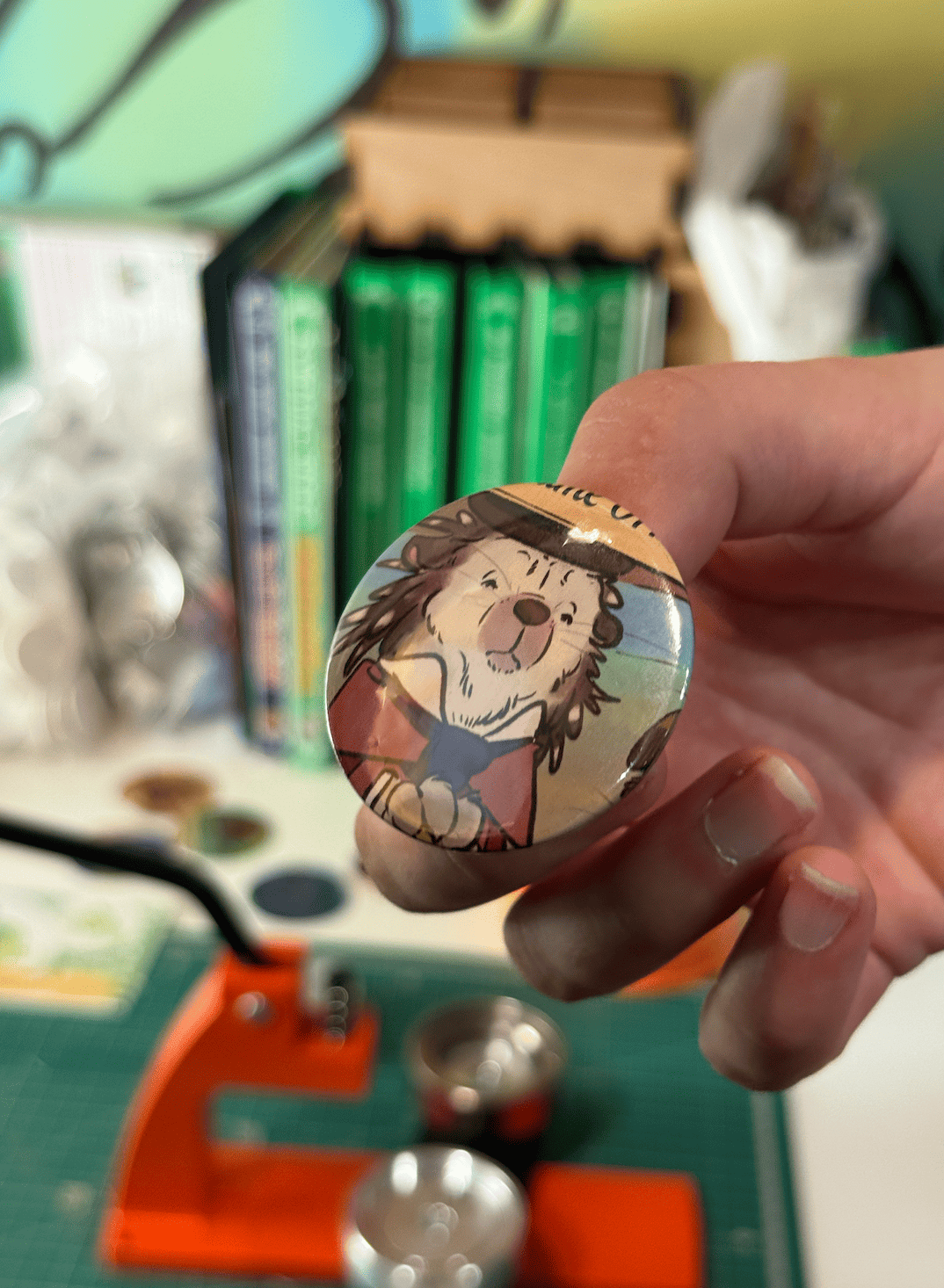 It was such a hit that L’Alchimie du Jeu in Toulouse bought a badge-making machine to recreate the experience with books the publisher sends them. And these clever folks aren’t new to this. In 2024, they took the stage to receive their As d’Or award wearing ties and bow ties made from pieces of the Ma première aventure puzzle.