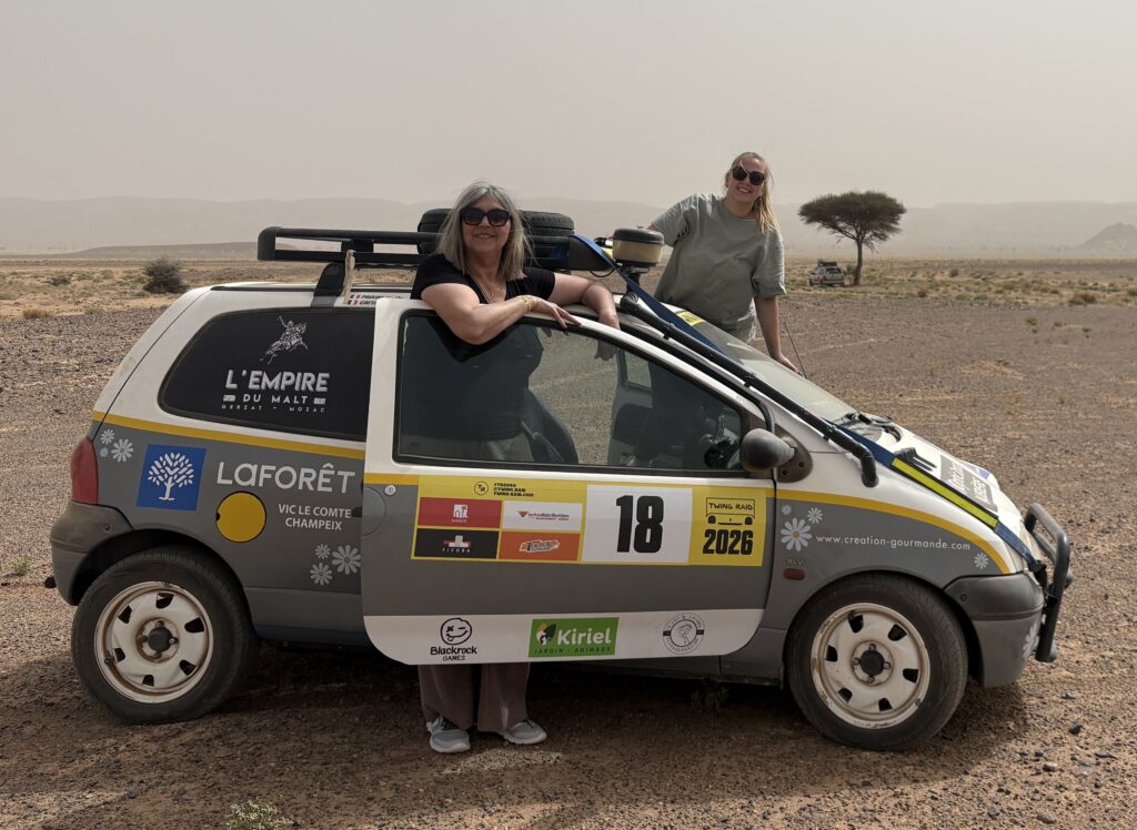 » C’était incroyable ! nous explique Gaëtane…. ça n’a pas toujours été facile mais ce ne sont que de bons souvenirs… Comme quand il faut pelleter couchées dans le sable pour mettre les plaques sous les roues et dégager la voiture…  » elle sourit, les yeux qui brillent, « Je ne pensais pas que j’étais capable de tout ça… « .