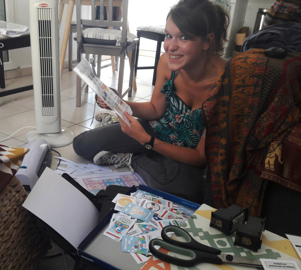 « Je me disais que la vie au final c’était comme un jeu : soit on avait les bonnes cartes pour avancer, soit on en avait de mauvaises qui nous retardaient. Qu’il y avait des cartes atouts, des cartes hasard, des cartes » La graine est plantée. Smile Life est nait… En rentrant à la maison, il en parle à sa compagne Margot. Deux heures plus tard, ils sont autour d’une table en train de découper des cartes pour un proto. Si Margot est joueuse dans l’âme, Alex, lui, avoue volontiers qu’il n’y connait rien. Le combo parfait pour trouver un jeu qui marche mais pas trop compliqué. La mécanique ? « C’est celle du 1.000 bornes, sourit Alex, c’est la première qui m’est venue à l’idée ». Le graphisme ? C’est Alex, encore, qui va se lancer, ça tombe bien il a toujours rêvé de se faire copain-copain avec Illustrator.